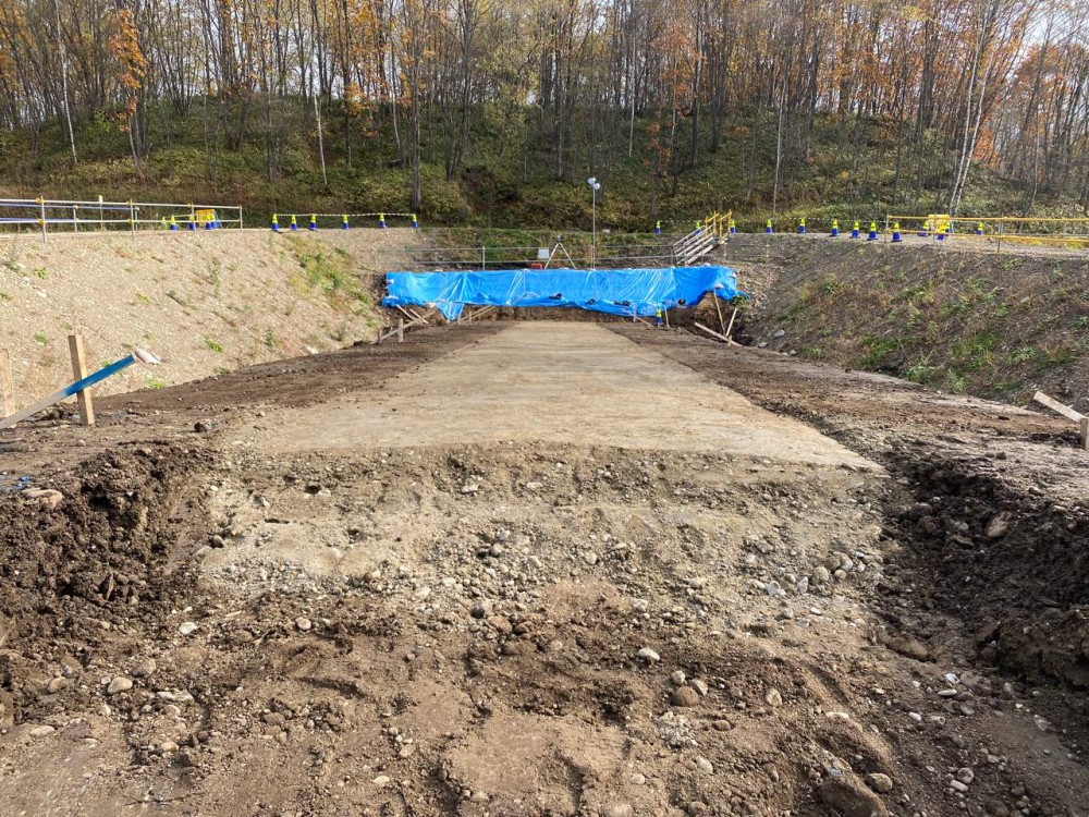 【工事名】居辺川砂防工事 【発注者】北海道十勝総合振興局帯広建設管理部 【工期】令和5年6月22日~令和6年1月30日 【施工場所】河東郡上士幌町 【担当者より】 この工事は、川底の土砂が流されることで起きる問題(川底の低下や川岸の崩れ)を防ぐため、特殊な土とセメントを混ぜた材料で 川底を補強し、さらに砂利で保護する工事を行いました。 複数の場所での作業となったため、周辺の農家の方々への騒音対策に特に注意し、新しい工法への挑戦を協力会社や経験豊富な先輩方の サポートで工事を無事完成することが出来ました。 地域の皆様の生活環境を第一に考え、丁寧なコミュニケーションを心がけながら工事を進めました。 今後も地域に寄り添った、安全で確実な工事を行ってまいります。