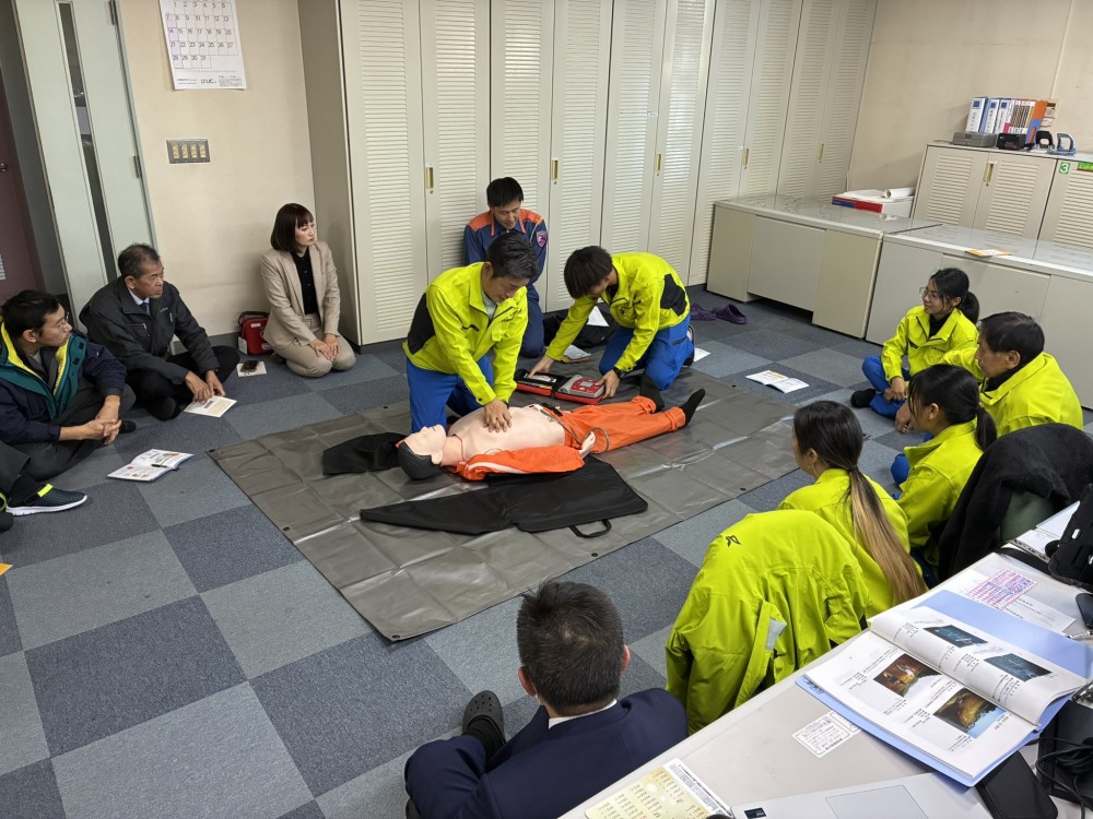 火事や急病などの緊急事態に備えて、「防火・防災訓練」を行いました 消防署の方々にご指導いただき、火事が起きた時の初期対応方法や、緊急時に正確な情報を伝える通報のコツを実際に体験しながら学びました また、煙が充満させた部屋での避難体験や、心肺停止の際に使用するAED(自動体外式除細動器)の操作方法についても実践的に習得しました このような訓練を通じて、社員一人ひとりが緊急時に適切な行動を取れるよう、日頃から安全意識の向上に努めています